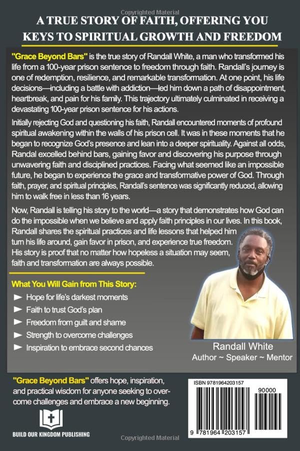 Whether you’ve faced physical imprisonment, emotional struggles, or spiritual battles, Grace Beyond Bars offers hope, inspiration, and a path to redemption. Through raw honesty and heartfelt wisdom, Randall invites readers to experience the same transformative grace that changed his life forever.