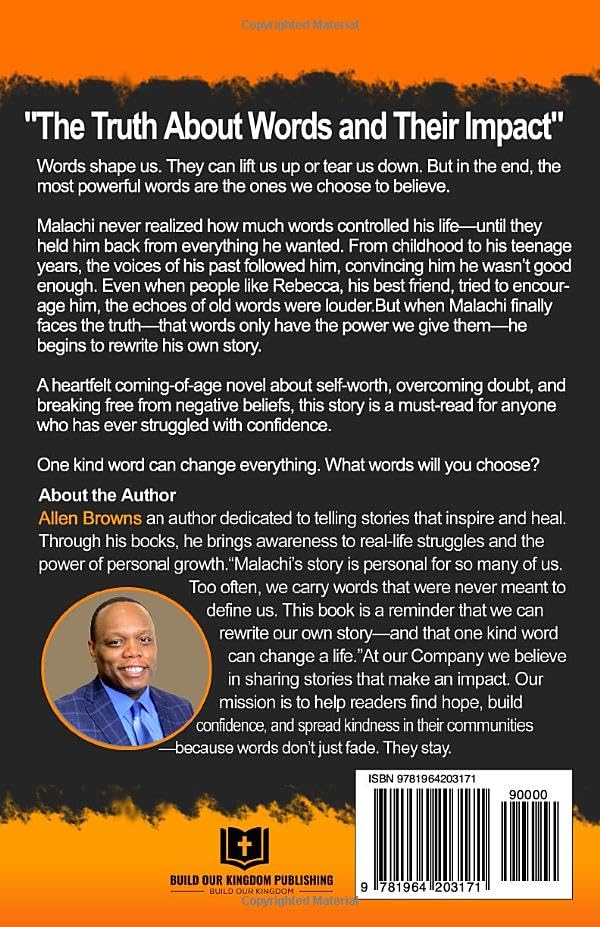 From the time he was a child, Malachi was surrounded by words that told him who he was—and who he wasn’t. At home, he heard warnings, criticisms, and comparisons that made him feel small. At school, classmates like Jeff made him question his worth. Even when his best friend Rebecca spoke encouragement, he couldn’t fully believe it. No matter where he turned, he felt like he wasn’t good enough, smart enough, or strong enough to succeed.
